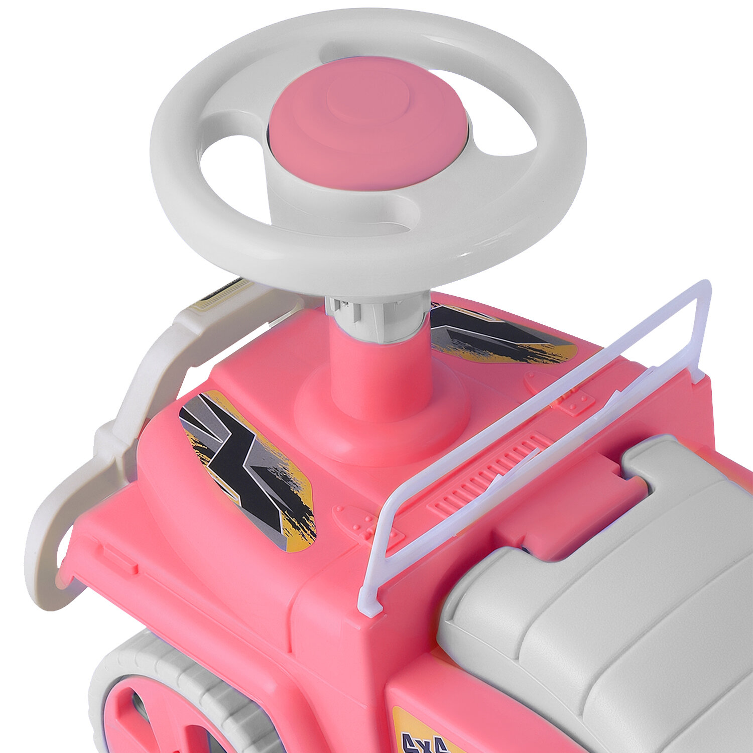 Каталка детская толокар, внедорожник, джип, пушкар, пластиковые колеса, высокая спинка, багажник, розовый, JB5300680