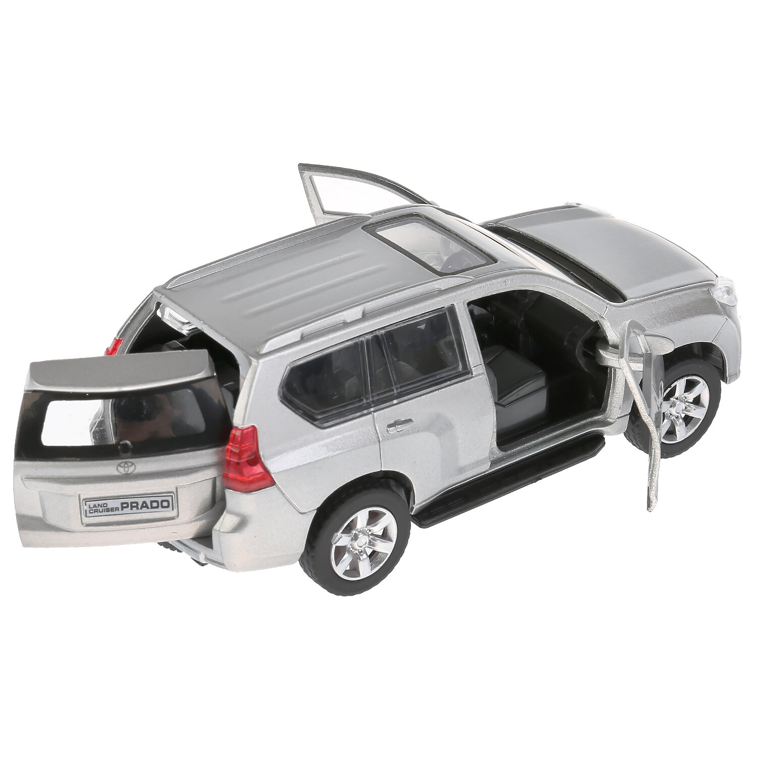 Машинка детская Toyota Land Cruiser Prado 12 см, Технопарк, серебристая, открываются двери и багажник, металл