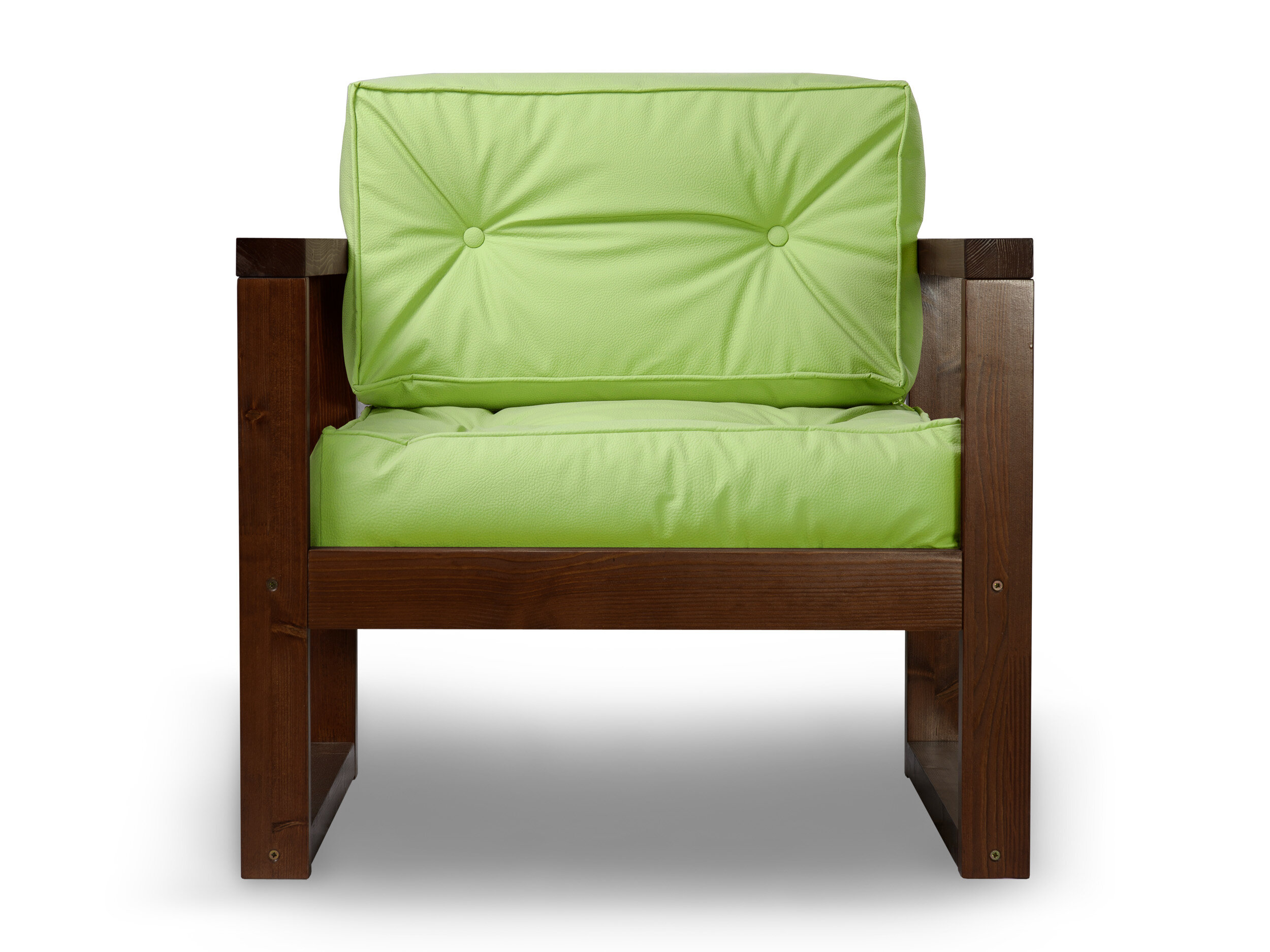 Кресло АСТЕР, салатовое-орех, кожаное, деревянное, мягкое, для дачи, для кафе и бара, на веранду, в террасу, для бани