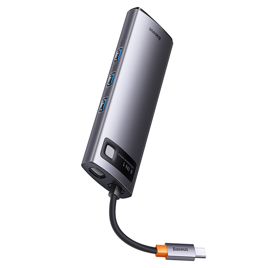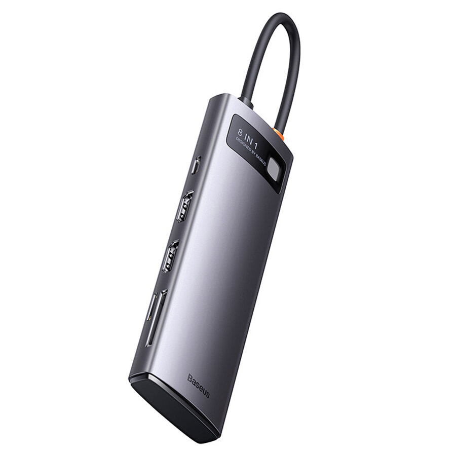 Переходник/Адаптер BASEUS Metal Gleam Series 8-in-1, Разветвитель, Type-C - 3xUSB3.0+ 2*HDMI+PD+SD/TF, серый