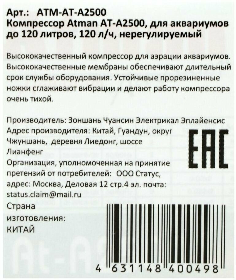 Atman Компрессор Atman AT-A2500 для аквариумов до 120 литров интересное: