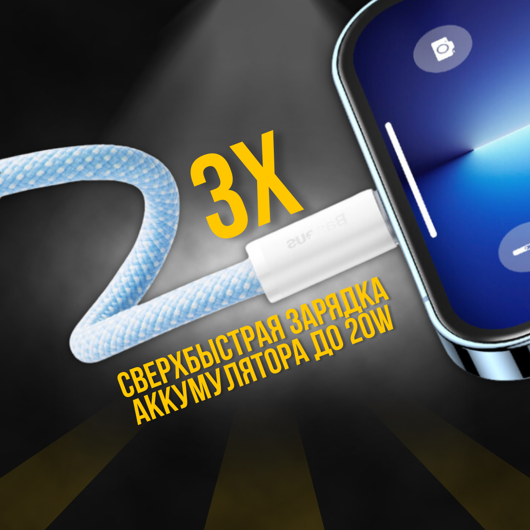 СохранитьКабель для передачи данных / быстрой зарядки / Baseus Dynamic Series Fast Charging Data Cable Type-C to iP 20W 2m Blue CALD000103 интересное: