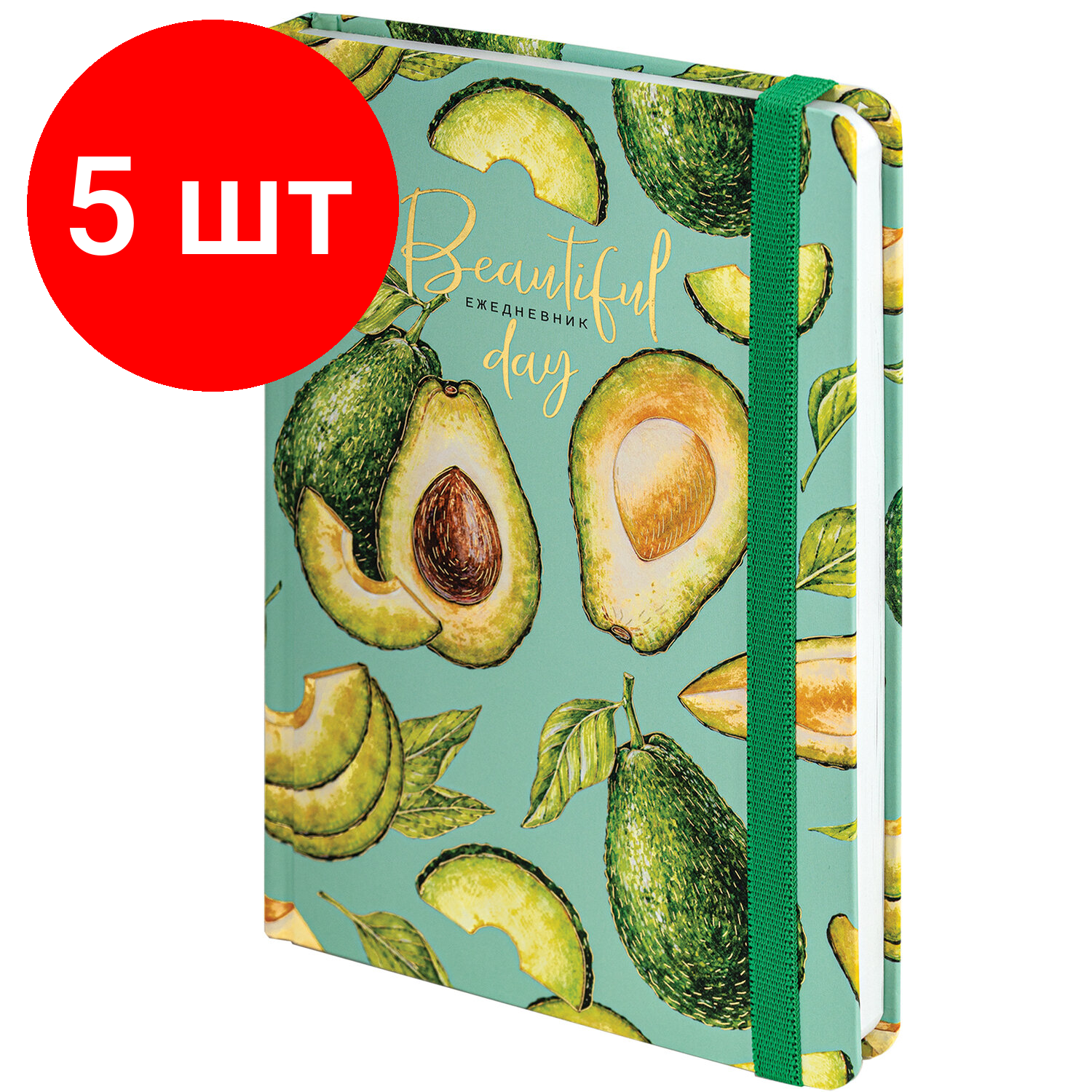 Купить Комплект 5 шт, Ежедневник недатированный с резинкой А5 (145х203 мм), BRAUBERG, твердый, фольга, 128 л., "Avocado", 114563