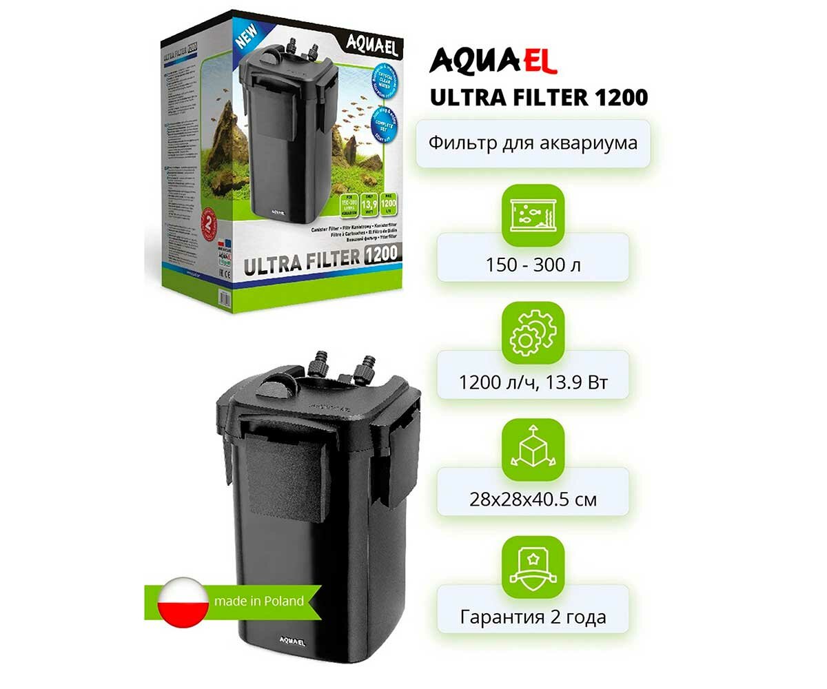 Купить Внешний фильтр AQUAEL ULTRA FILTER 1200 для аквариума 150 - 300 л (1200 л/ч, 13.9 Вт)