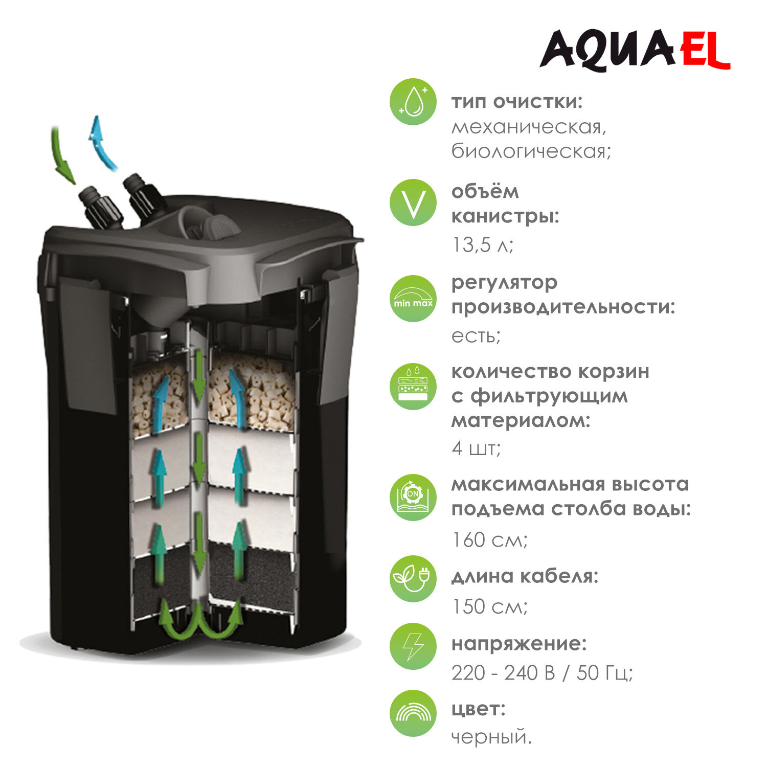 Фильтр внешний AQUAEL ULTRA FILTER 1400 для аквариума 250 - 500 л (1400 л/ч, 14.8 Вт, h = 170 см)