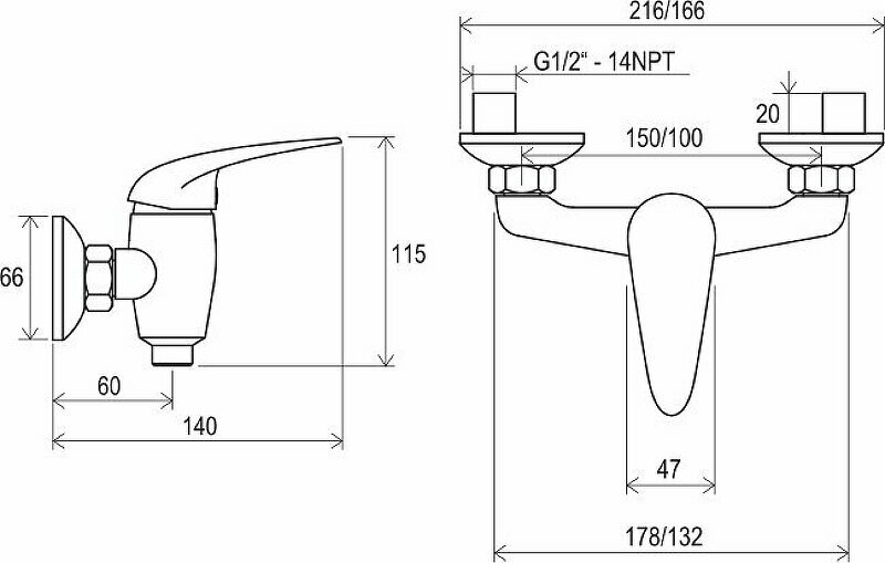 Cмеситель настенный для душа без гартитуры 100 мм SN 032.00/100