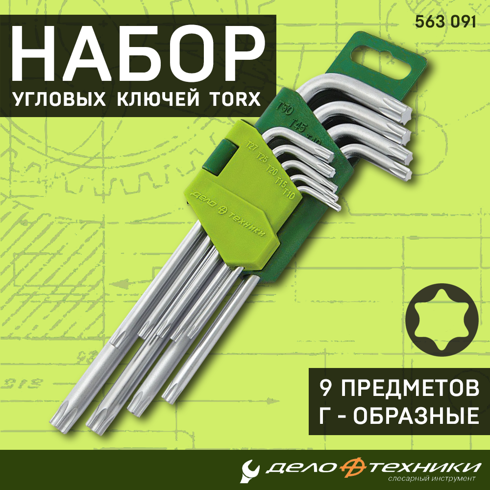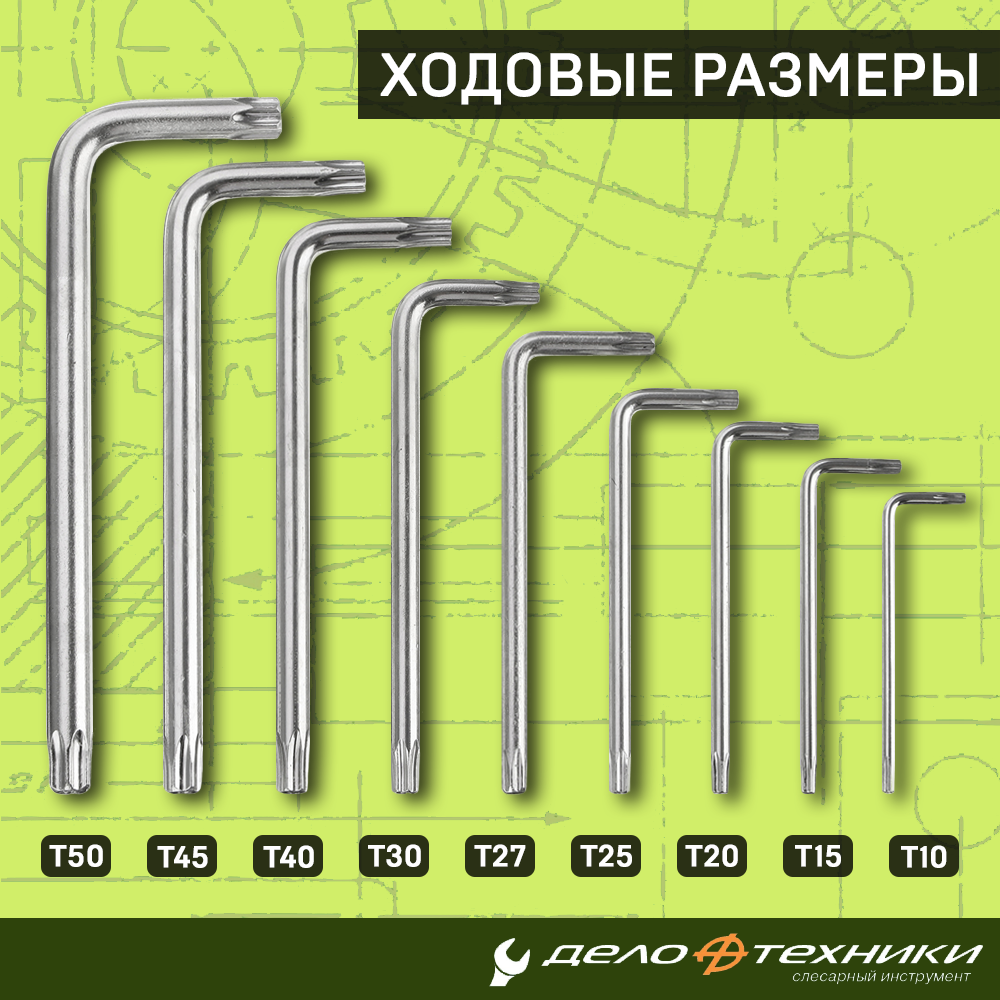 Набор Ключей Torx 9 Шт (Т10 Т15 Т20 Т25 Т27 Т30 Т40 Т45 Т50) Дт Дело Техники арт. 563091