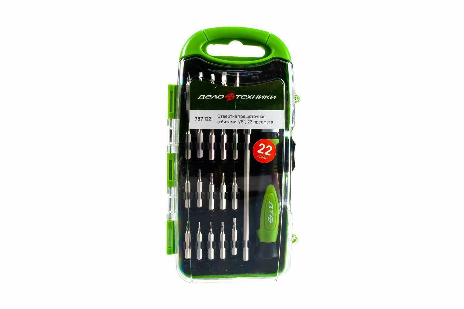 Отвёртка трещоточная для точных работ с битами 1/8'', 22 предмета 787122 Дело Техники