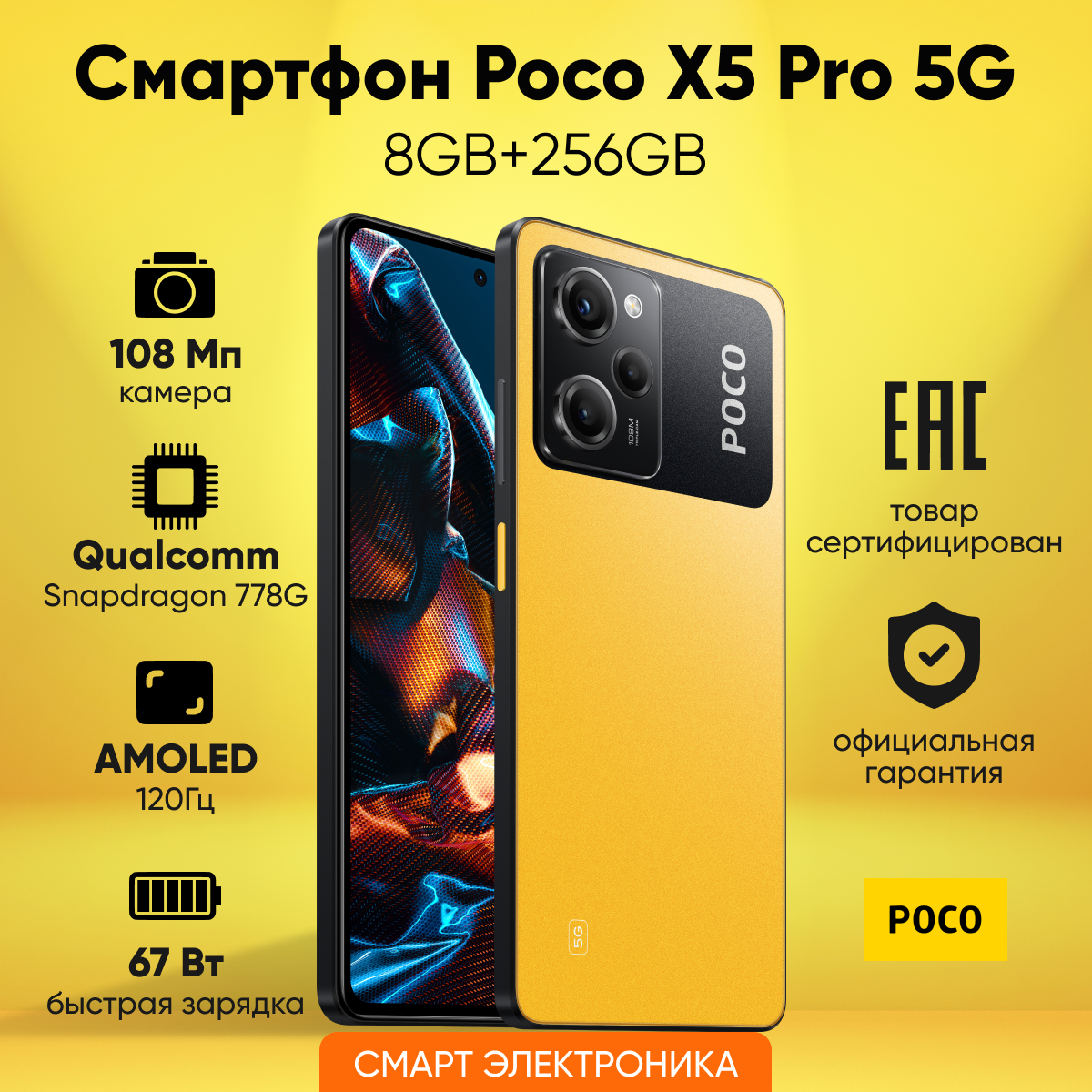 Смартфон Poco X5 Pro 5G, 128 Гб/256 ГБ, Snapdragon 778g, 120 Гц, AMOLED, МП, Вт, 8GB 256GB, Poco, X5 Pro 5G, Смартфон, Черный, 8ГБ, 256ГБ, global, новый