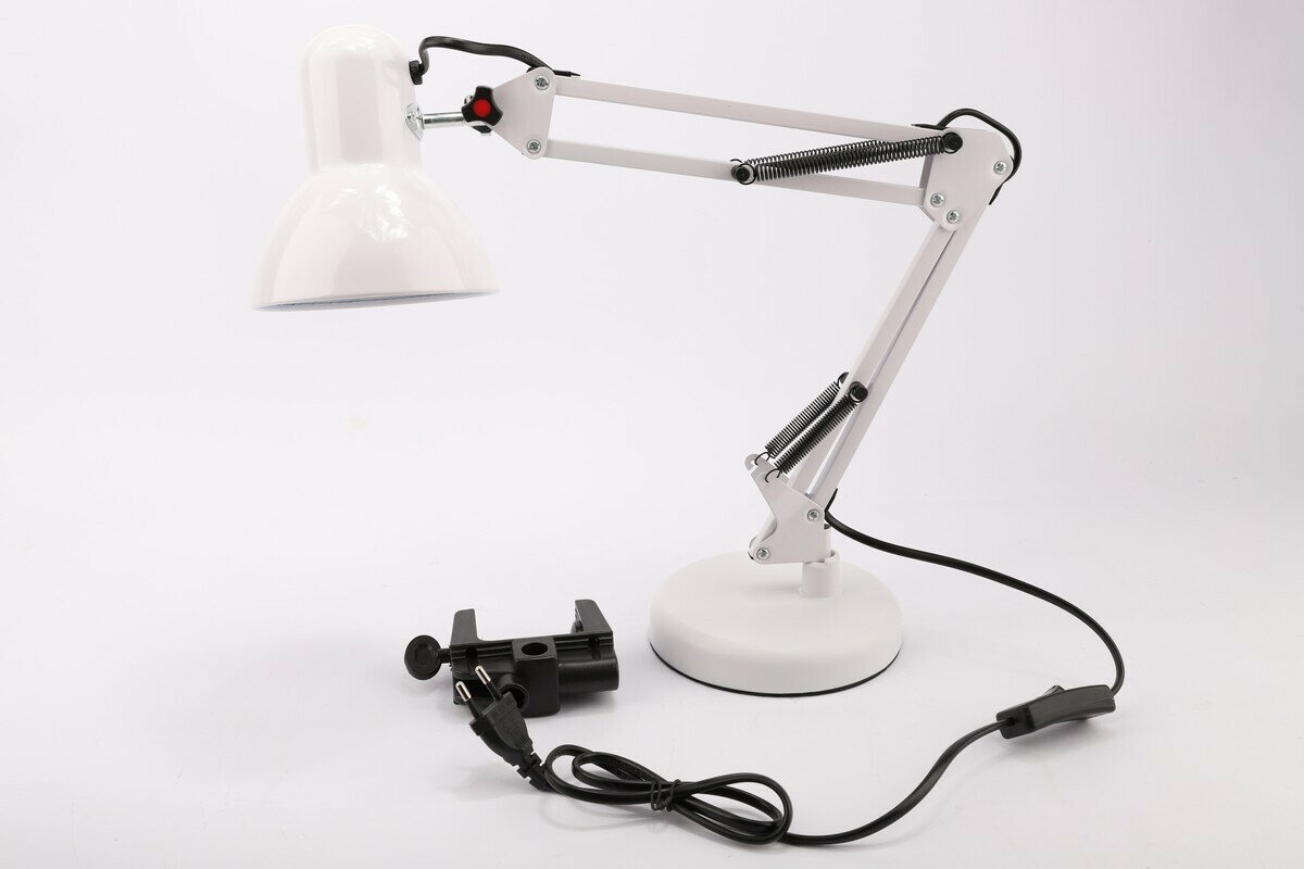 Настольная лампа цвет белый, мощность светильника 60Вт, Е27, высота 60 см подставка+струбцина в комплекте