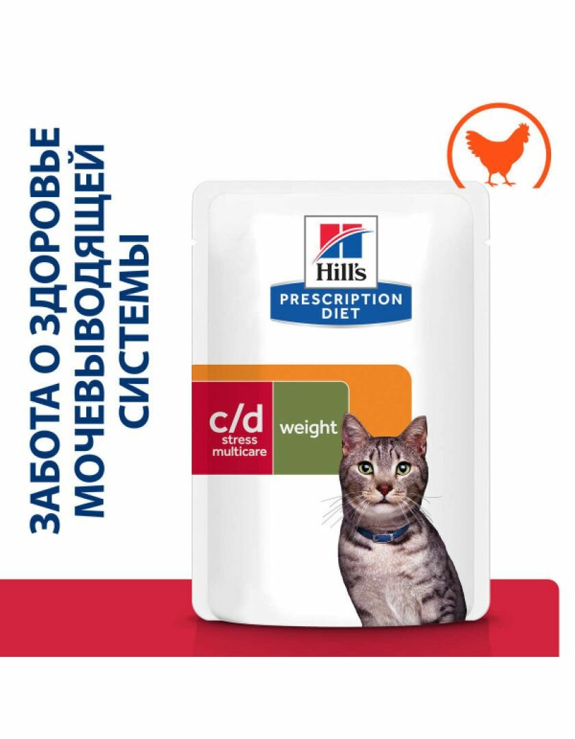 Влажный диетический корм для кошек Hill's Prescription Diet c/d Multicare Stress + Metabolic коррекция веса и лечение мочекаменной болезни с курицей 85 г интересное: