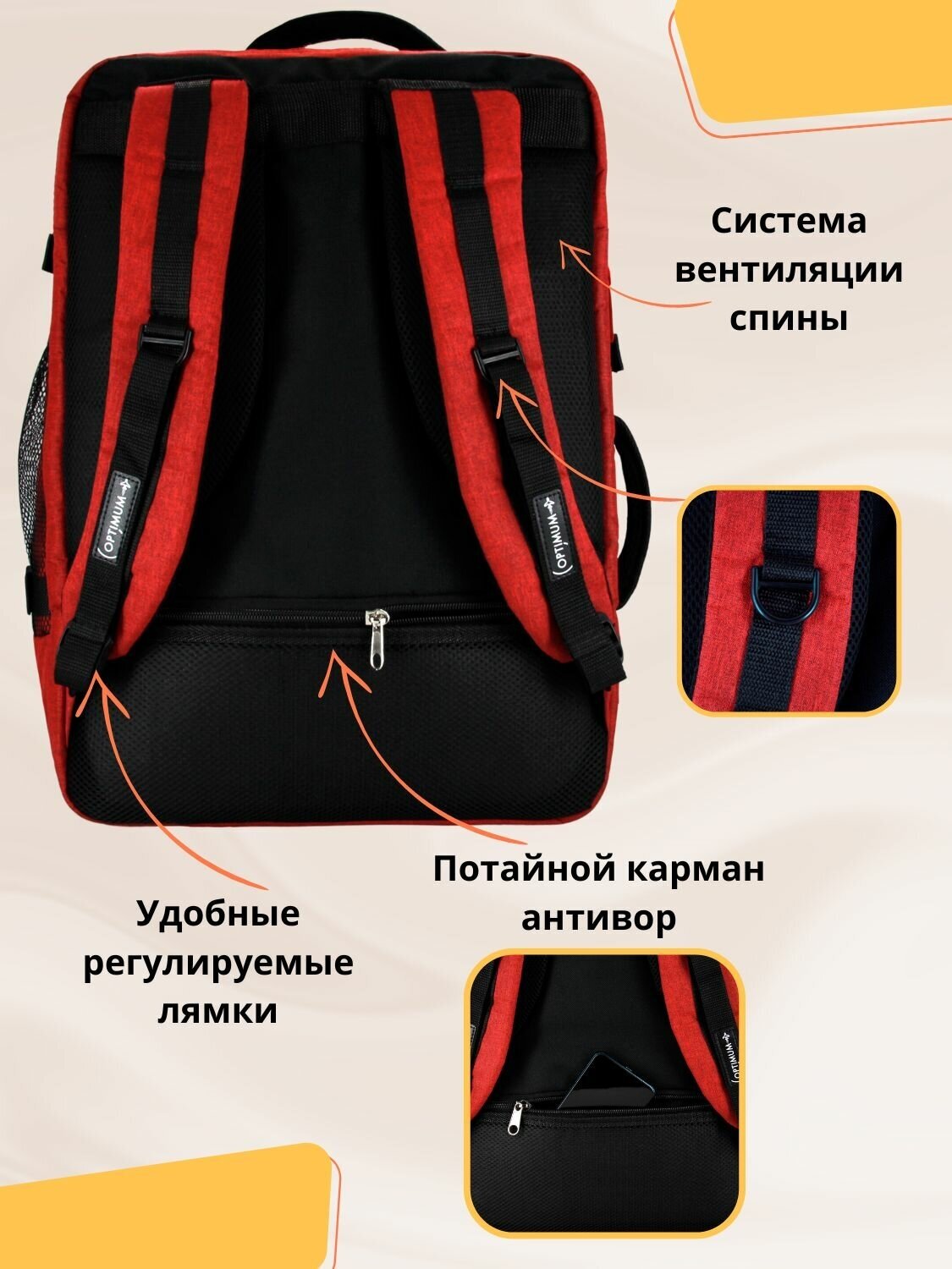 Рюкзак сумка чемодан ручная кладь S в самолет дорожная 44 л, красный