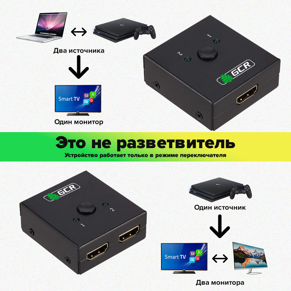 Переключатель HDMI универсальный 1x2 или 2x1 4K 60 Hz для монитора телевизора (GL-VKDS) черный