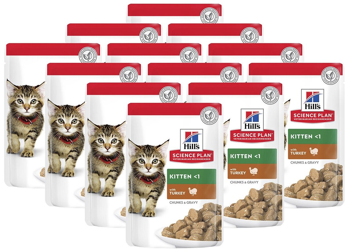 Влажный корм Hills Science Plan для котят для здорового роста и развития, пауч с индейкой в соусе, 85 г х 12 шт