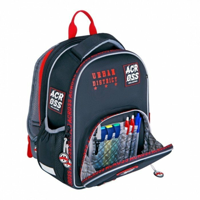 Across Рюкзак каркасный 37 х 28 х 12 см, Across 194, наполнение: мешок, пенал, тёмно-серый/красный ACR22-194-5