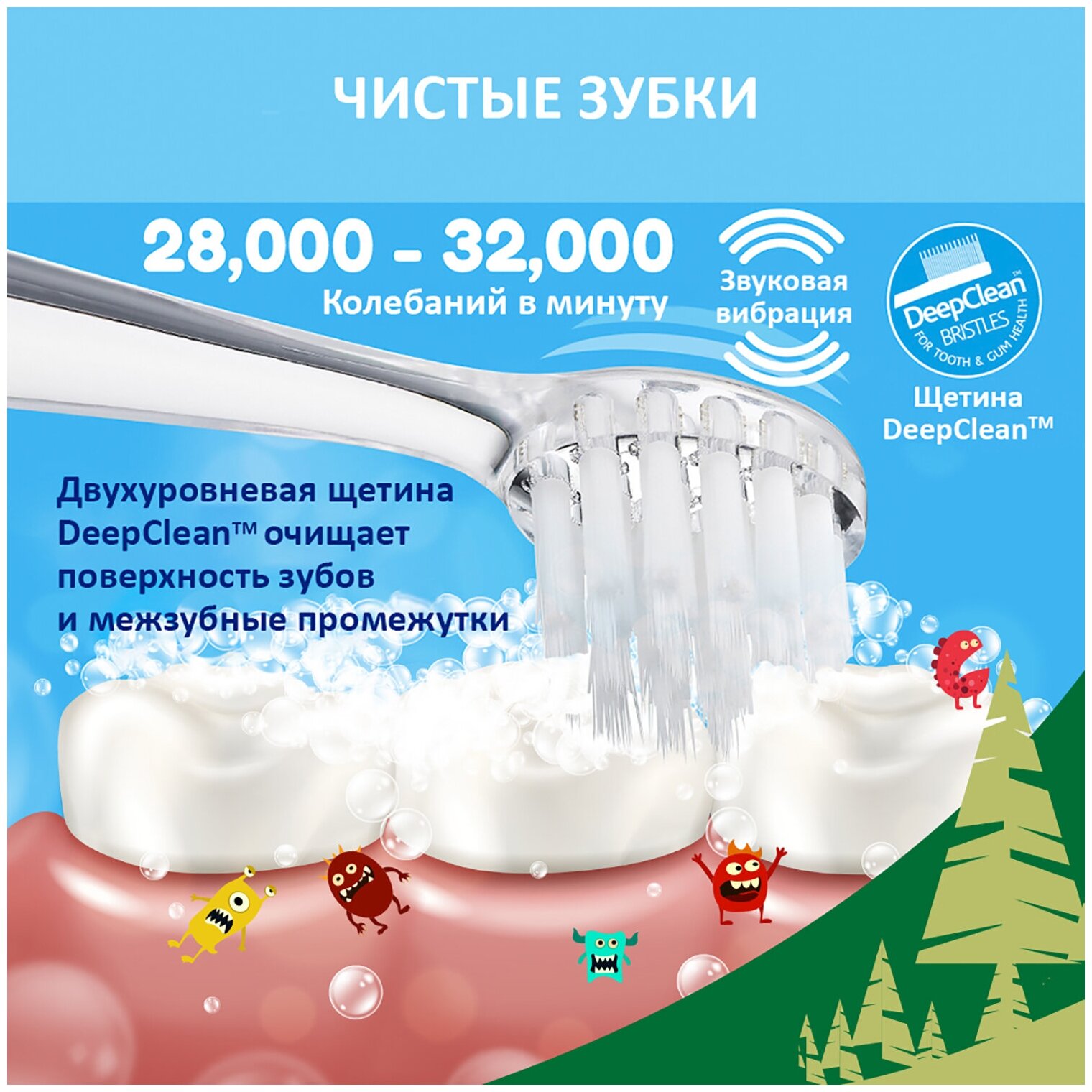 | Подробная комплектация | Зубная щетка, 3 сменные насадки, зарядное устройство |