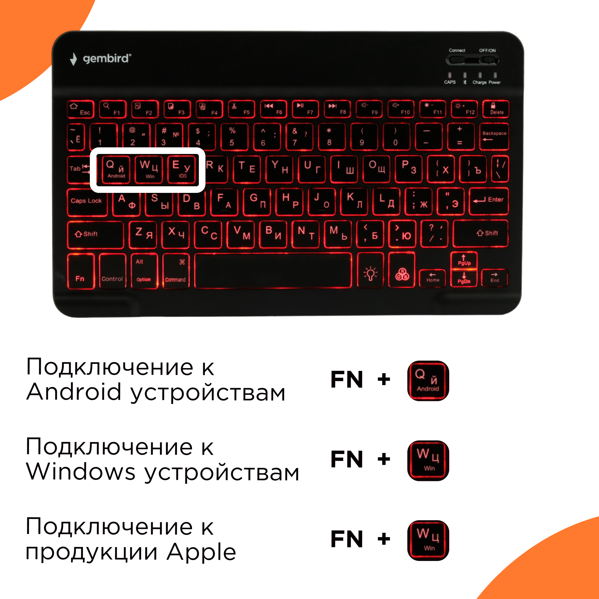 Купить Клавиатура беспроводная Gembird KBW-4, Bluetooth, 78 кл., ножничный механизм, ультратонкая