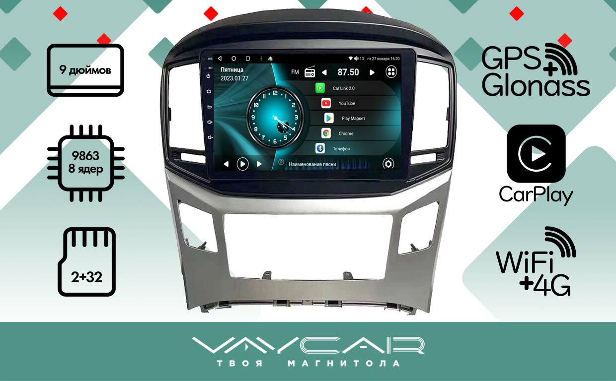 Магнитола Vaycar 09V2 для HYUNDAI H1 Starex 2016+ (Андроид, 2+32, 8 ядер, WiFi, BT, 4G, GPS, QLED 9")