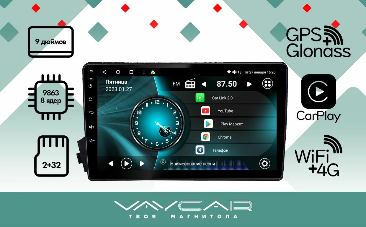 Магнитола Vaycar 09VO4 для SSANG YONG Kyron 2007-2015 (Андроид, 4+64, 8 ядер, WiFi, BT, 4G, GPS, QLED 9")