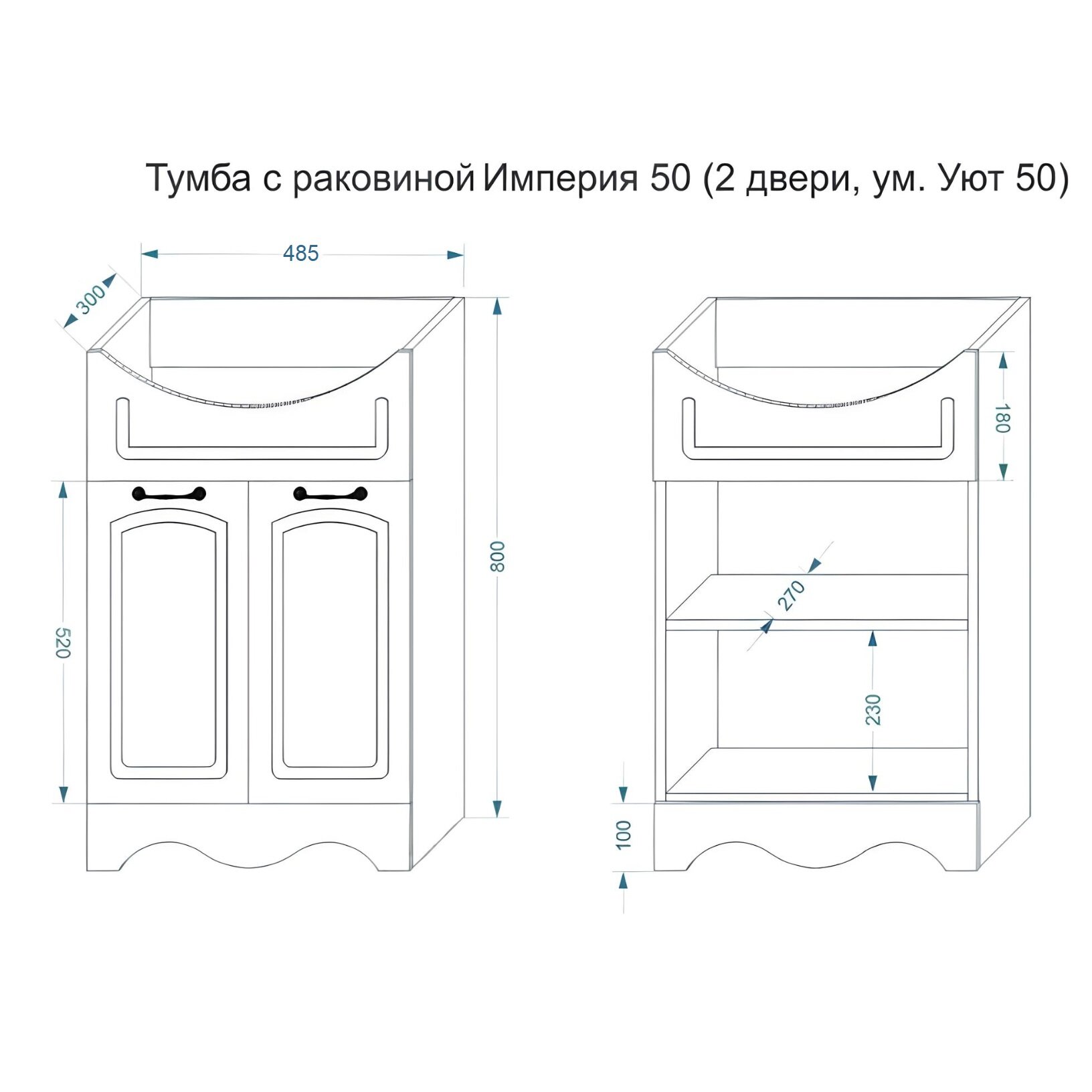 Купить Тумба с раковиной Империя 50 венге (2 двери, ум. Уют 50)