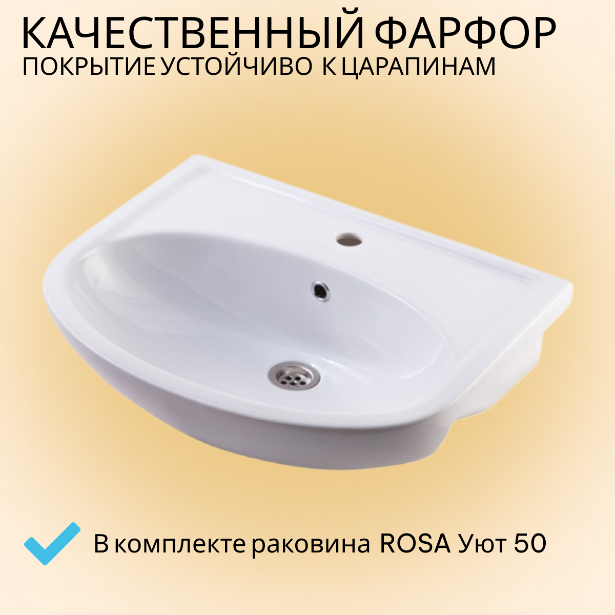 Тумба с раковиной "Империя 50", венге, МДФ/ЛДСП, с доводчиками, раковина Rosa Уют 50