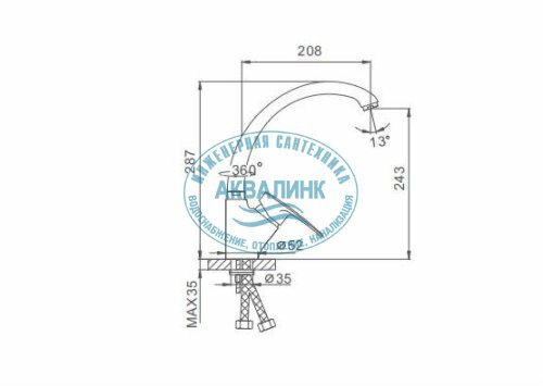 | Длина излива | 208 мм |