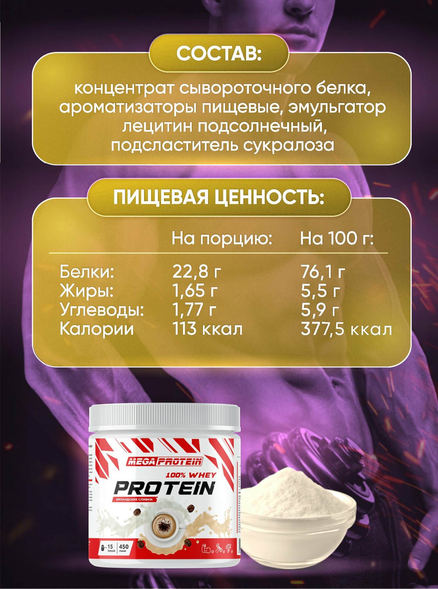 Ниже Вы можете прочитать отзывы на Протеин сывороточный 450 гр для набора мышечной массы и похудения со вкусом "Ирландские сливки", ознакомится с подробными характеристиками, посмотреть интересные обзоры и фотографии на Протеин сывороточный 450 гр для набора мышечной массы и похудения со вкусом "Ирландские сливки".