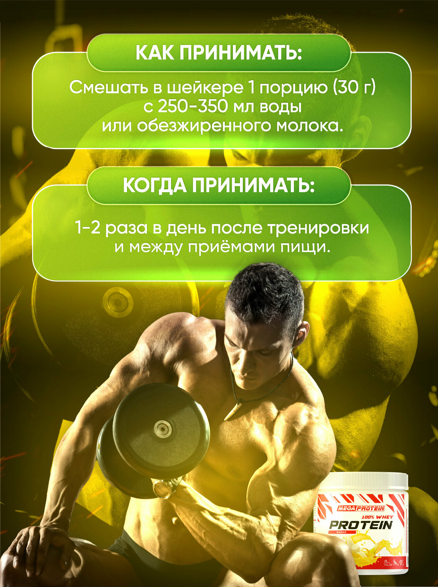 СохранитьПротеин сывороточный 450 гр для набора мышечной массы и похудения со вкусом "Банан" интересное: