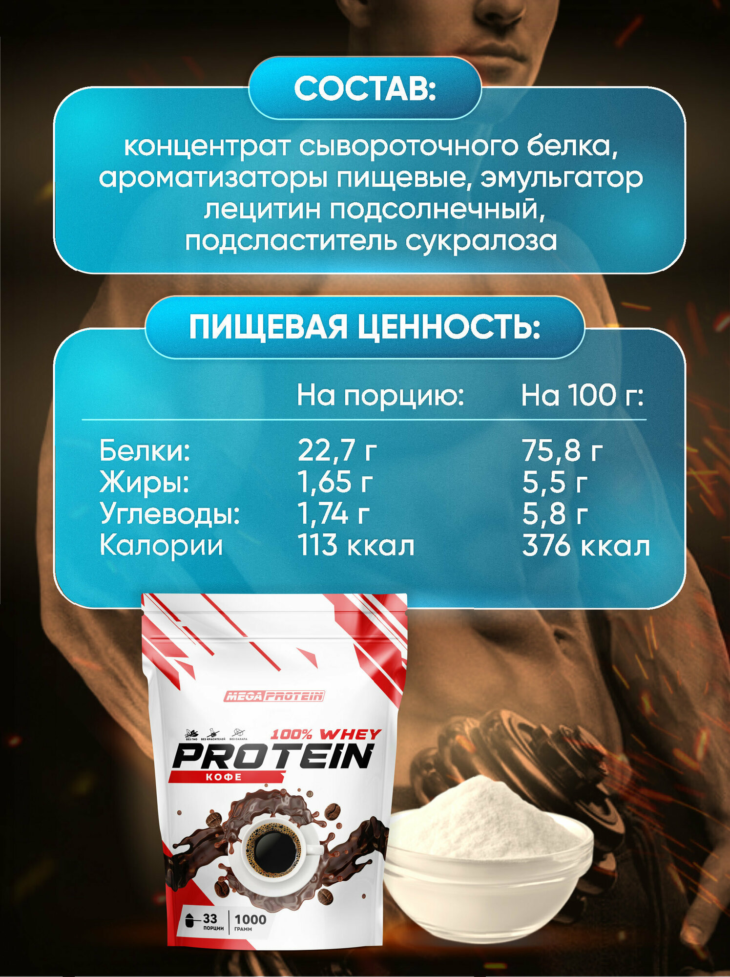 Протеин сывороточный Megaprotein WHEY PROTEIN , Кофе, 1000 г