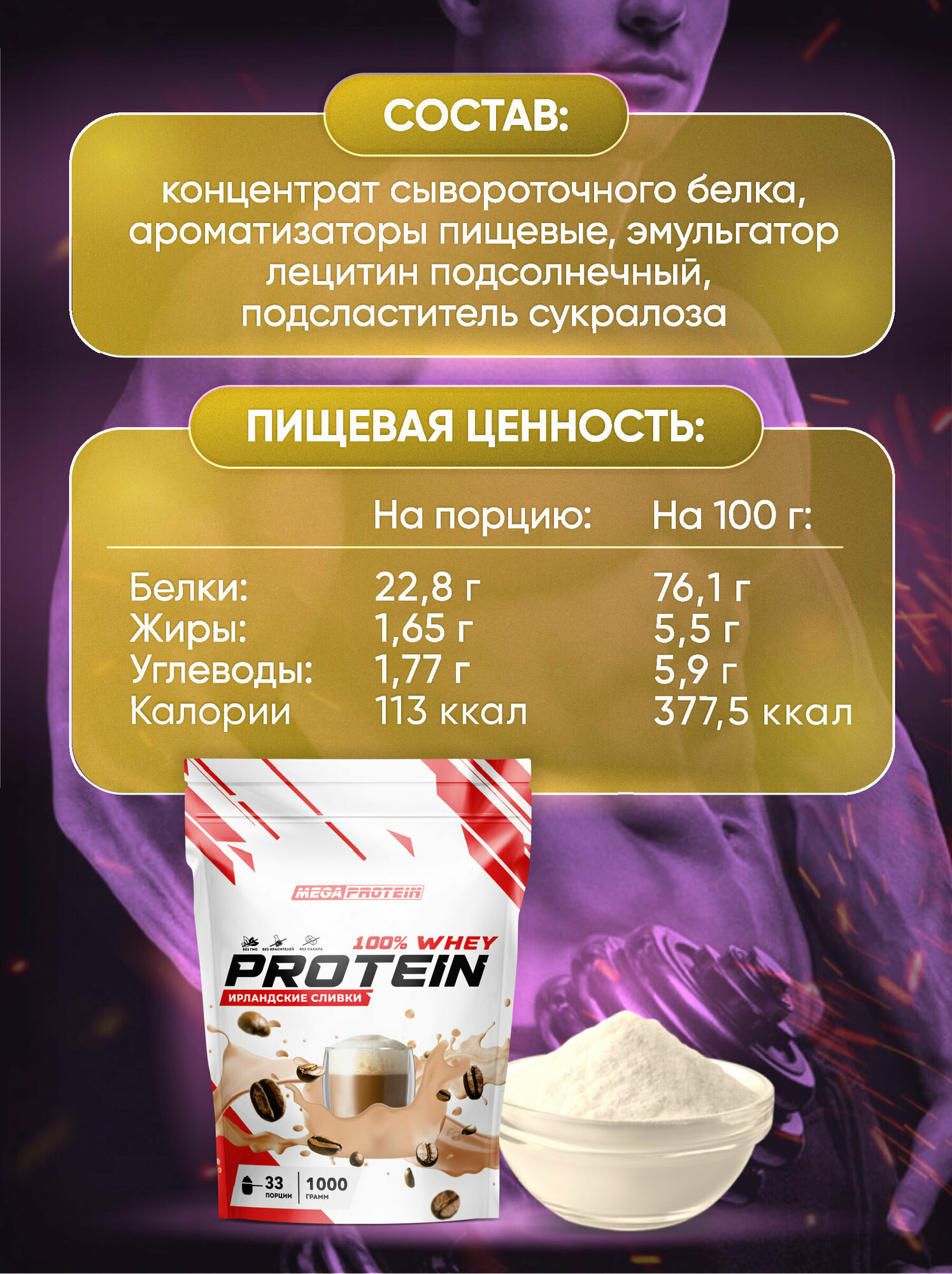 Ниже Вы можете прочитать отзывы на Сывороточный протеин / Протеиновый коктейль для набора мышечной массы и похудения со вкусом "Ирландские сливки", ознакомится с подробными характеристиками, посмотреть интересные обзоры и фотографии на Сывороточный протеин / Протеиновый коктейль для набора мышечной массы и похудения со вкусом "Ирландские сливки".
