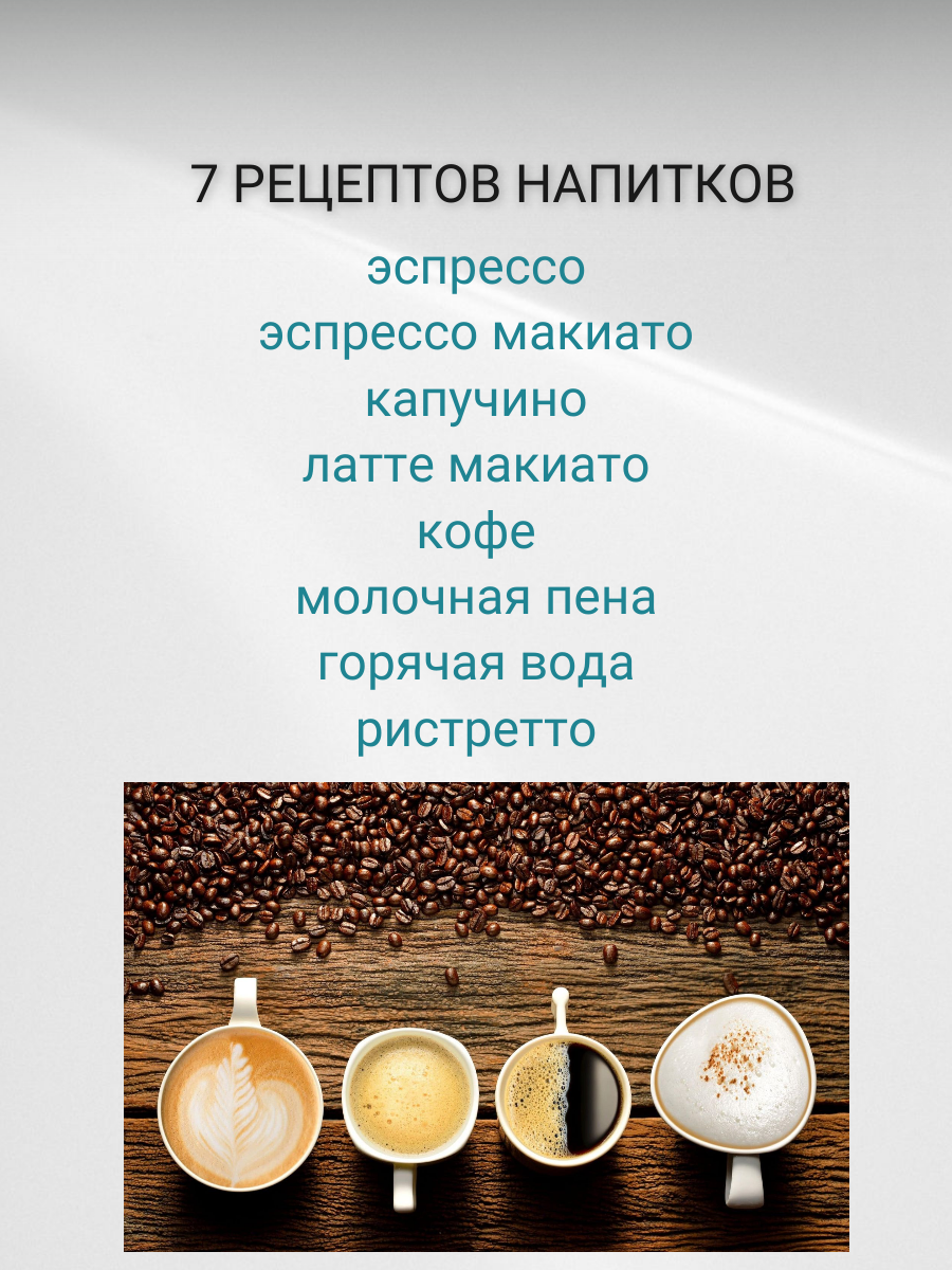 | Тип напитка | капучино / латте / латте макиато / ристретто / эспрессо |