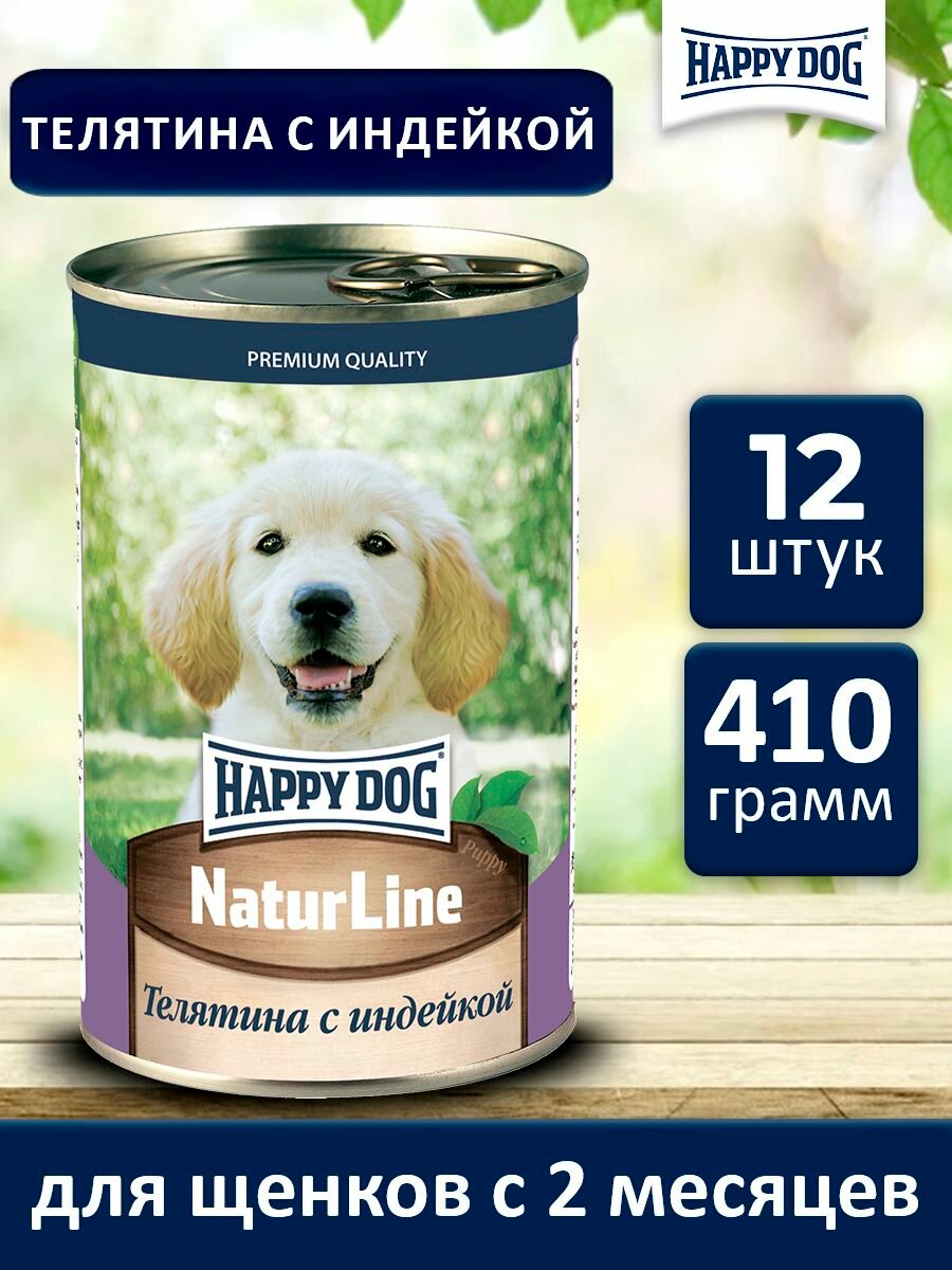 Консервы для щенков Happy Dog NatureLine, телятина с индейкой (410гр х 12шт)
