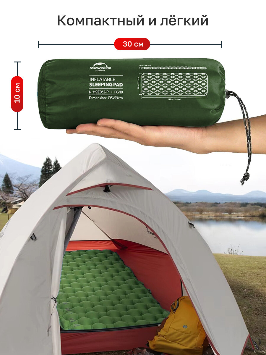 Надувной туристический коврик Naturehike FC-12 (Армейский зеленый)