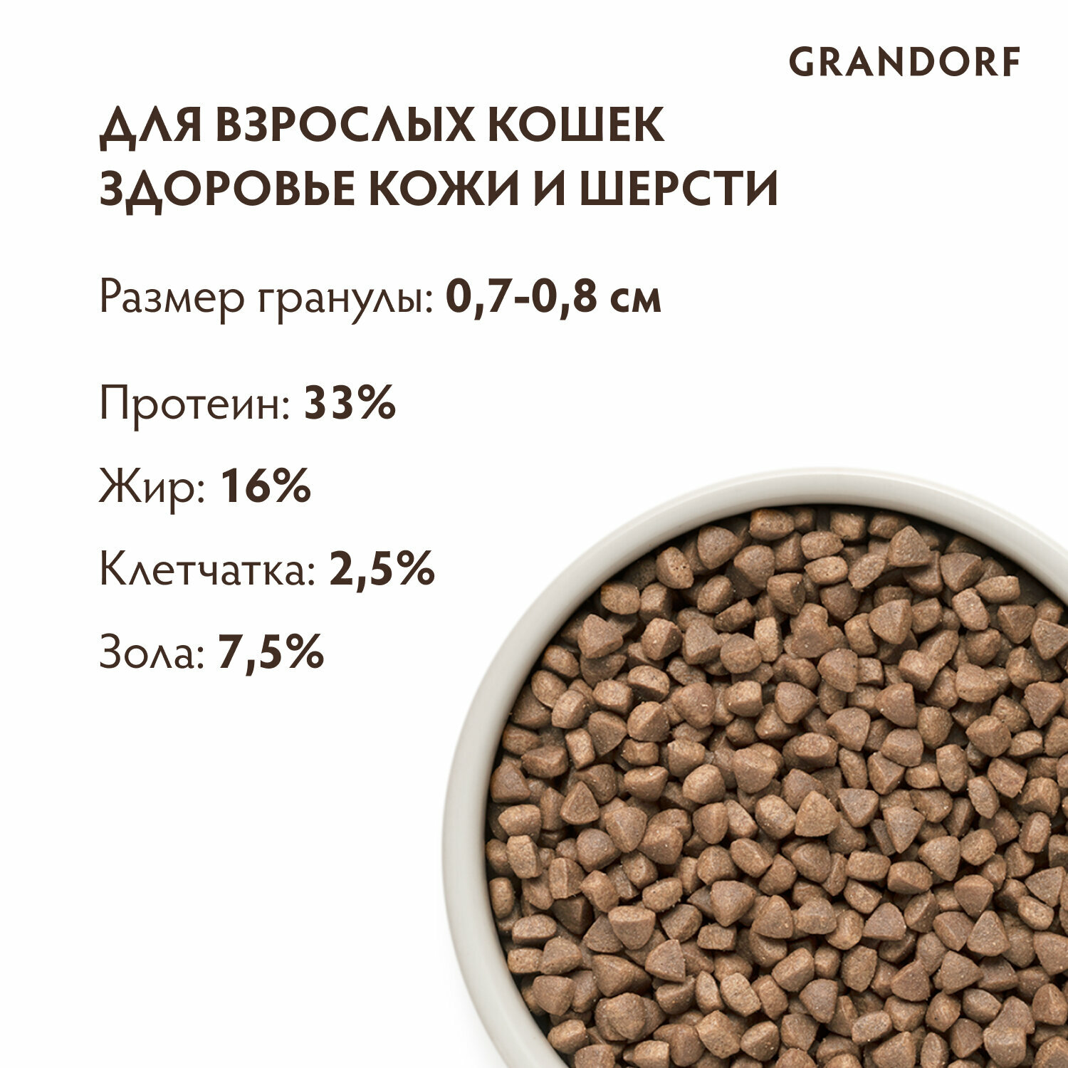 GRANDORF CAT SKIN&CARE корм для кошек забота о коже и шерсти Белая рыба и индейка