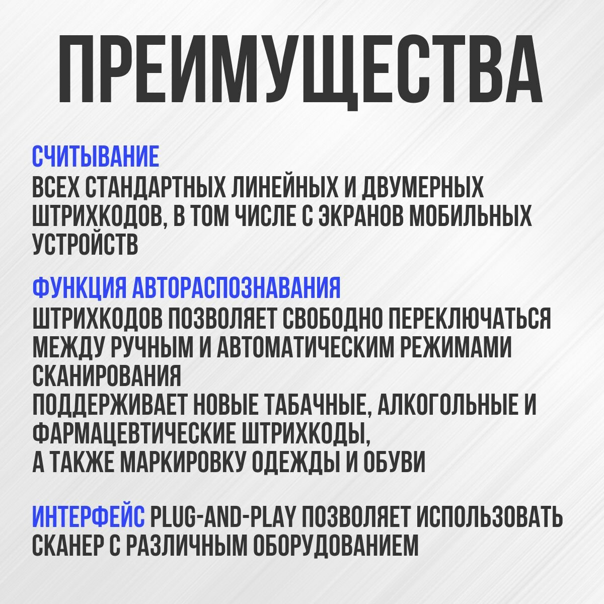 | Плюсы: | Отличный сканер, очень хорошо читает сигаретные коды маркировки. |