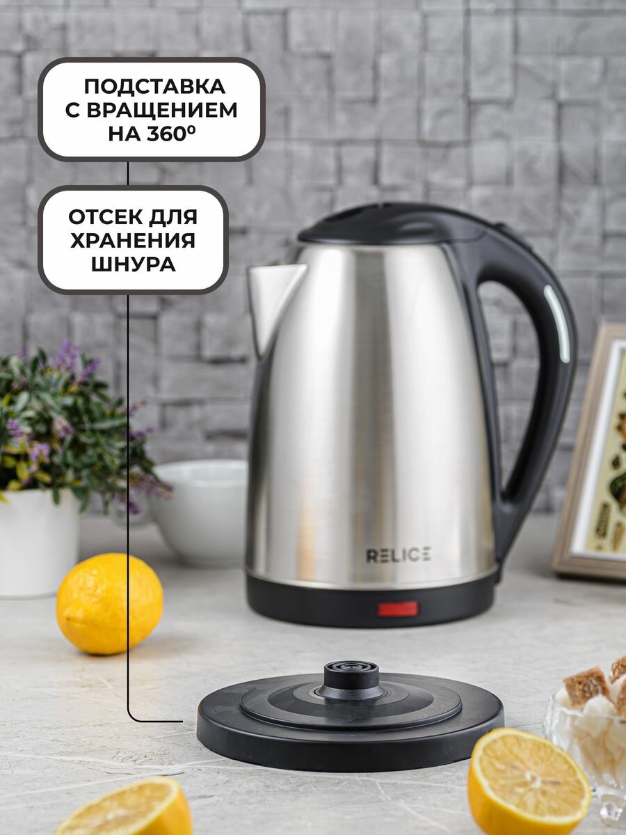 Чайник электрический металлический RELICE RL-182 / Нержавеющая сталь / объем 2,5 л