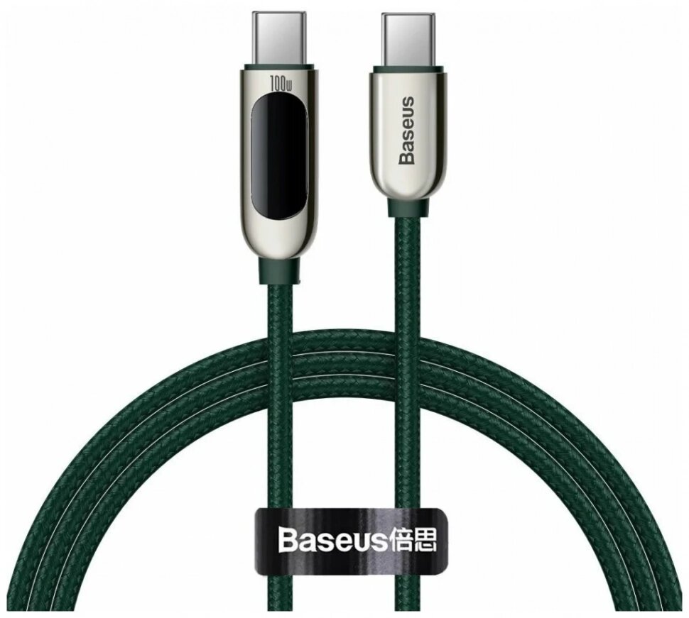 Кабель для быстрой зарядки и передачи данных BASEUS Display Fast Charging, Type-C - Type-C, 100W, 5A, 1 м, Зеленый