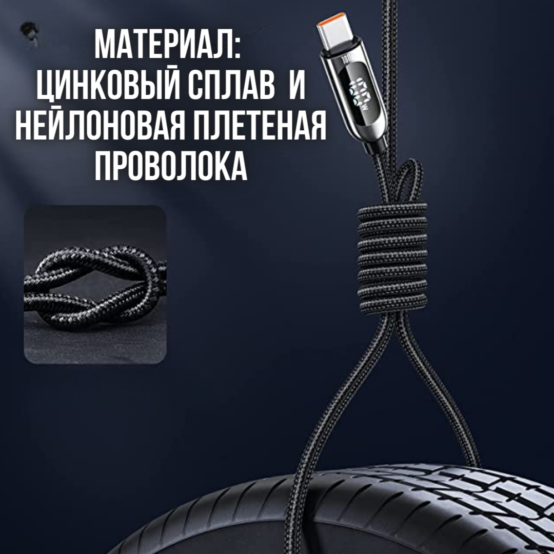 | Плюсы: | Качественная оплетка, держит быструю зарядку, есть экранчик, который показывает текущее состояние мощности, длинный. |