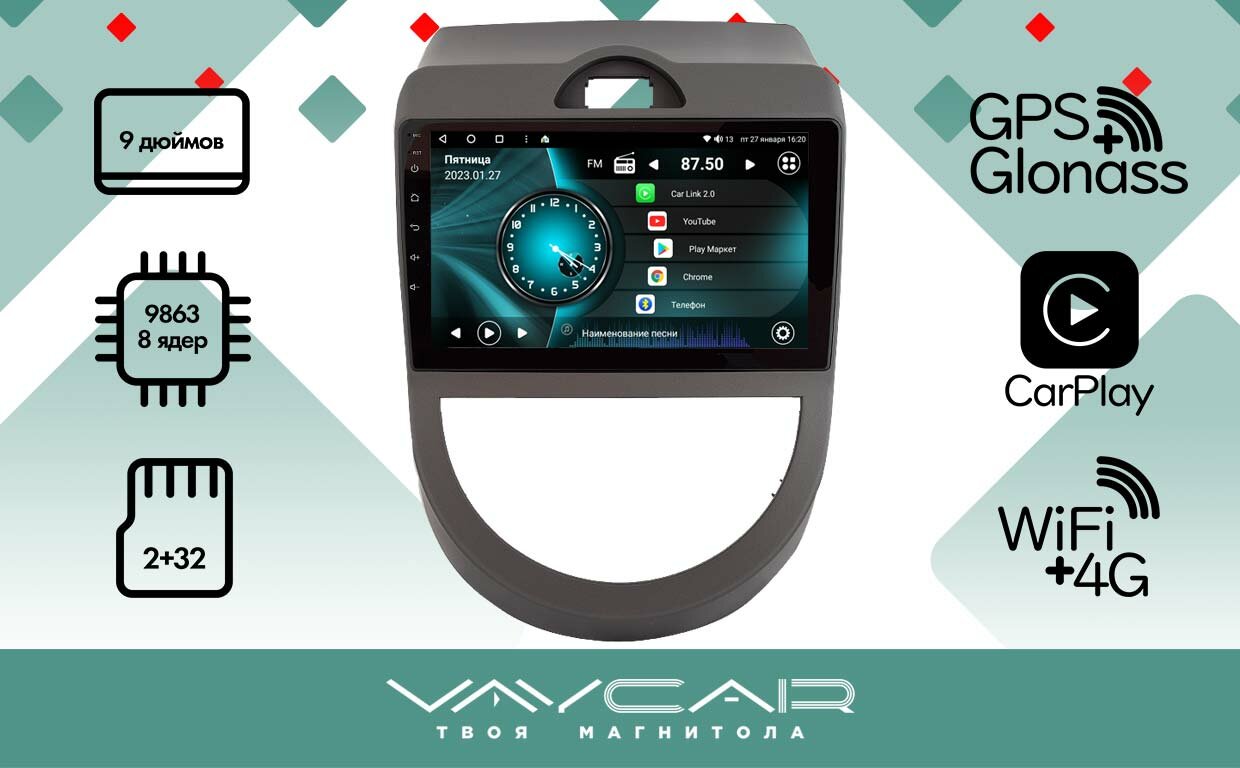 Магнитола Vaycar 09V2 для KIA Soul 2008-2014 (Андроид, 2+32, 8 ядер, WiFi, BT, 4G, GPS, QLED 9")