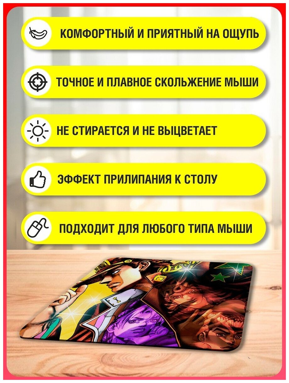 Коврик для мыши игровой, офисный с принтом, размер 25x30см, аниме JoJo ДжоДжо Джотаро Джованна - 8115