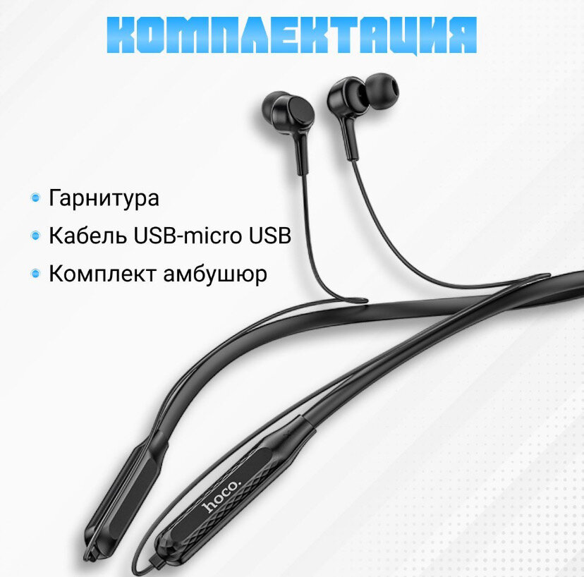 Наушники беспроводные HOCO ES51 Era sports wireless earphones Блютуз наушники/ Для спорта/ Для тренировок/ С микрофоном/ Bluetooth 130mAh 10 часов проигрывания черные
