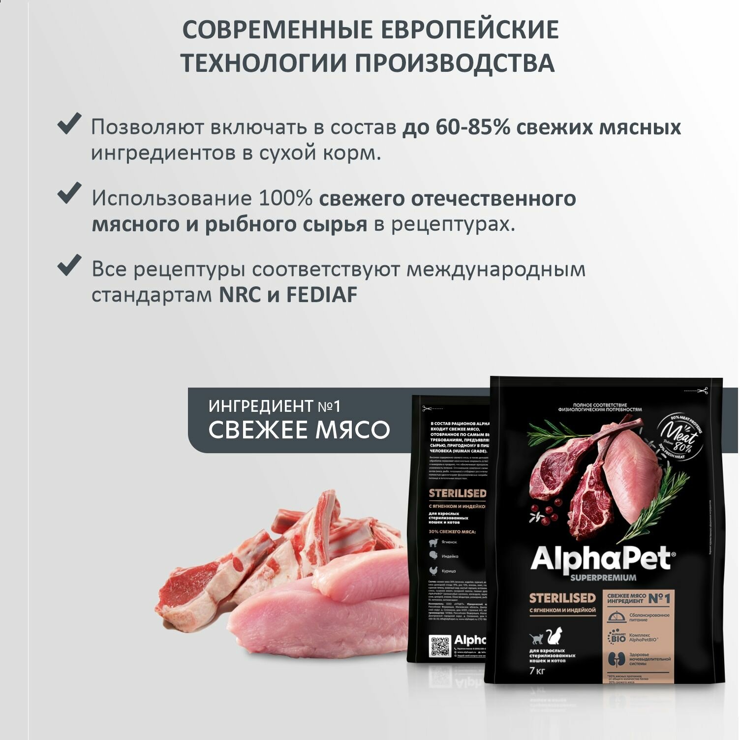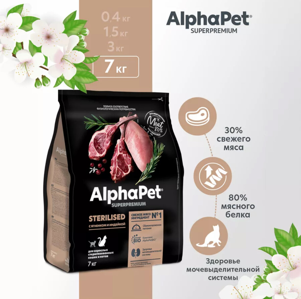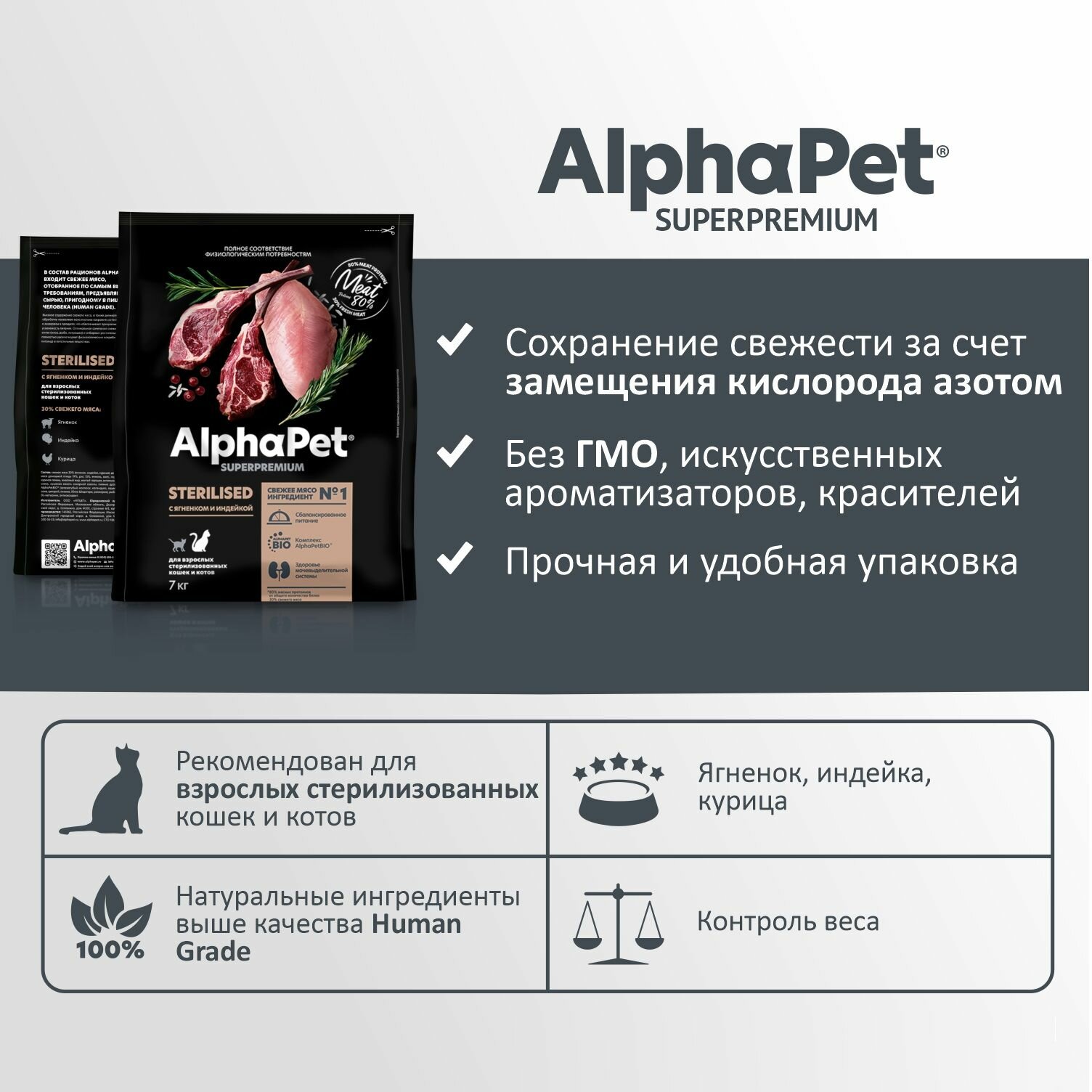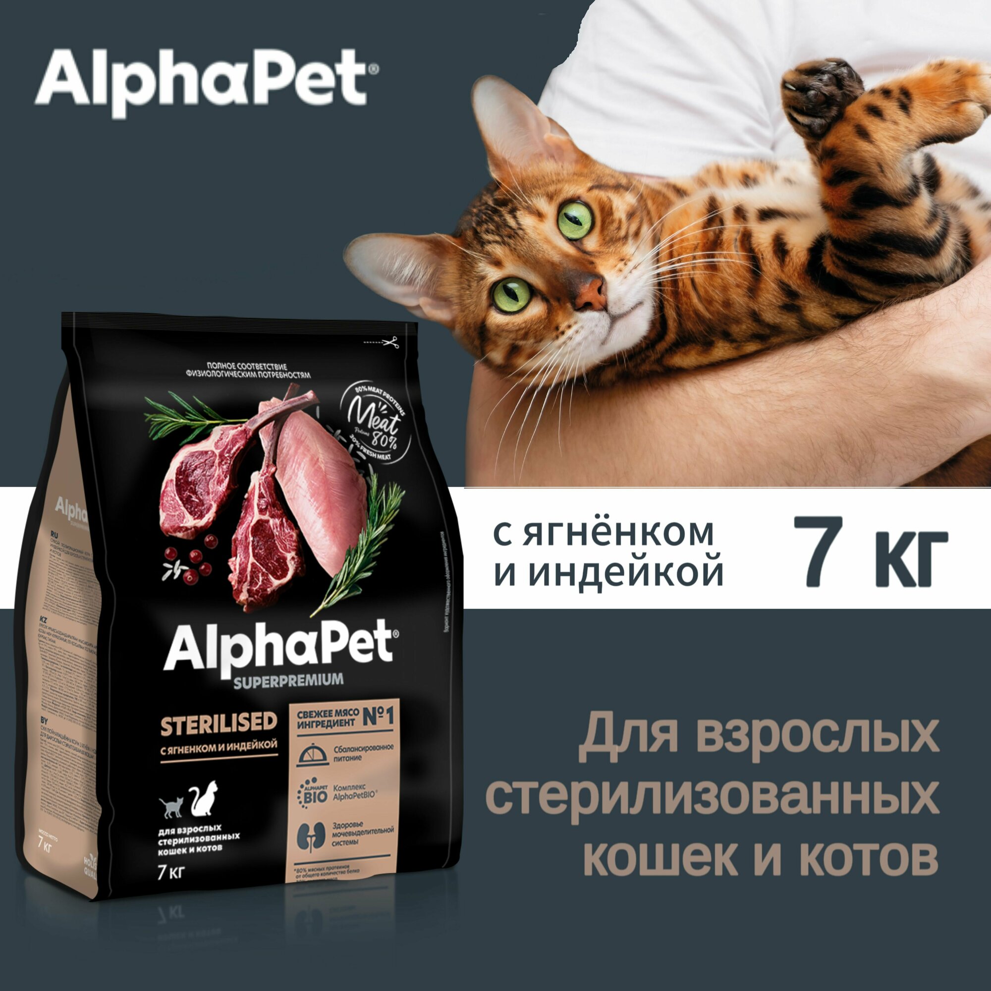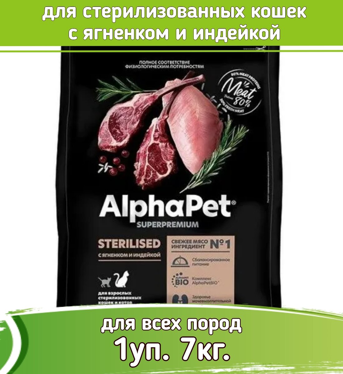 AlphaPet Superpremium Сухой корм для стерилизованных кошек и котов, Ягненок и Индейка, 7 кг