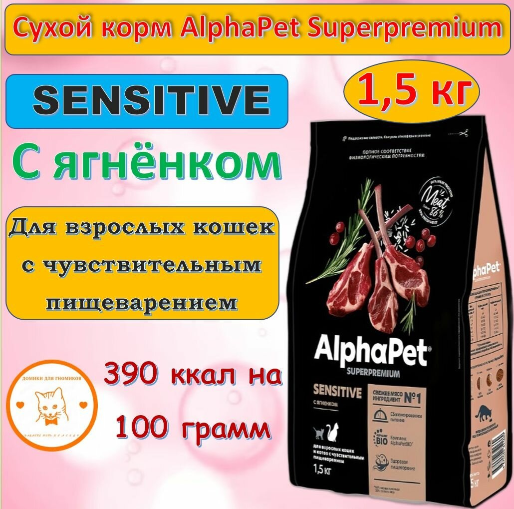 Купить AlphaPet Superpremium сухой корм для взрослых кошек и котов с чувствительным пищеварением с ягненком 1,5 кг