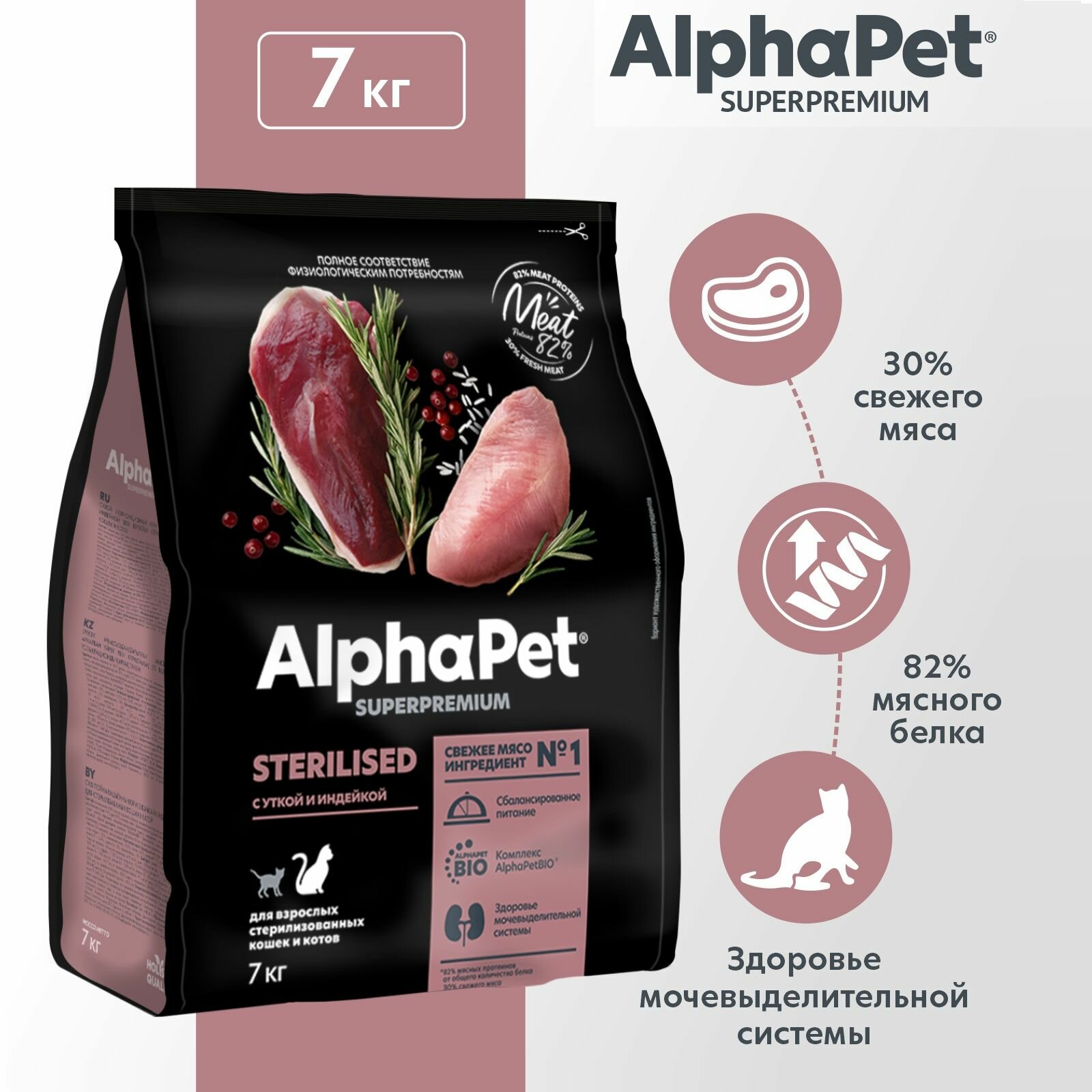 Купить ALPHAPET SUPERPREMIUM STERILISED 7 кг сухой корм для взрослых стерил. кошек и котов с уткой и инд