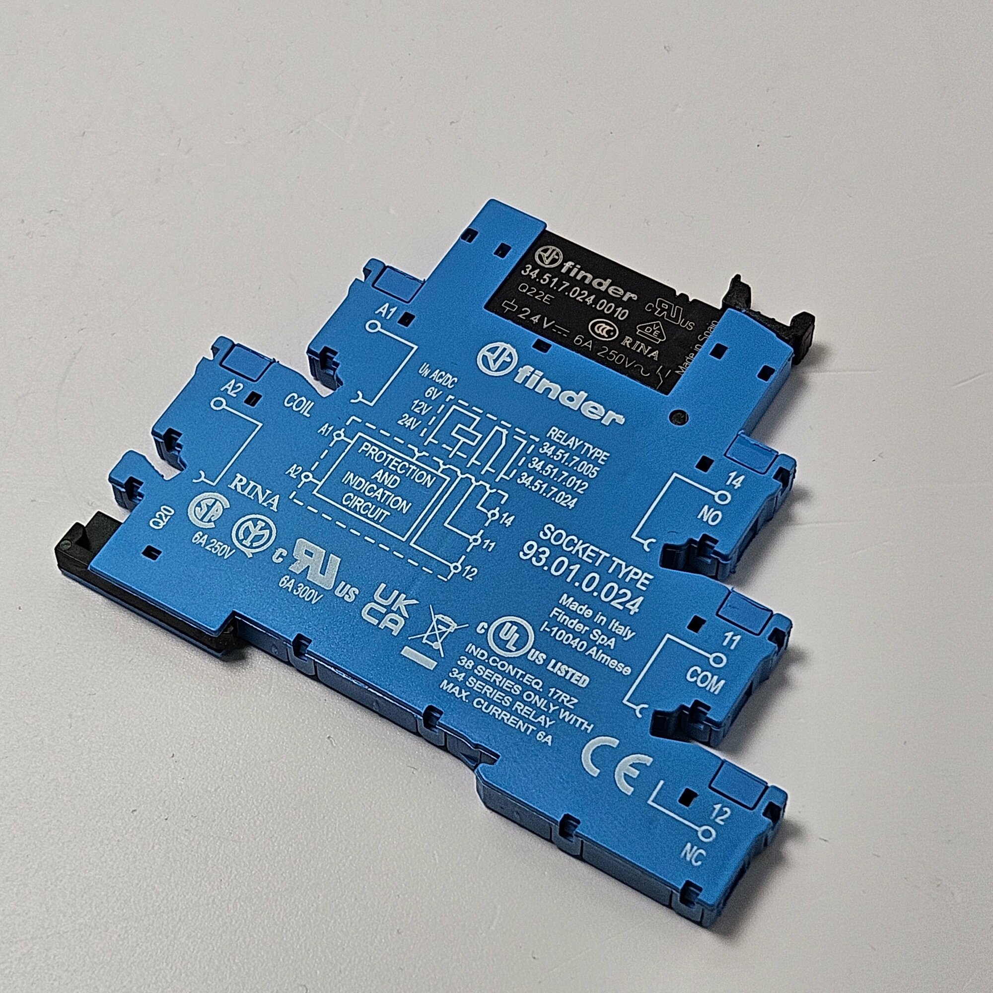 Модуль интерфейсный (сборка 34.51.7.024.0010 + 93.01.0.024) электромеханич. реле 1CO 6А AgNi 24В AC/DC IP20 винт. клеммы FINDER 385100240060