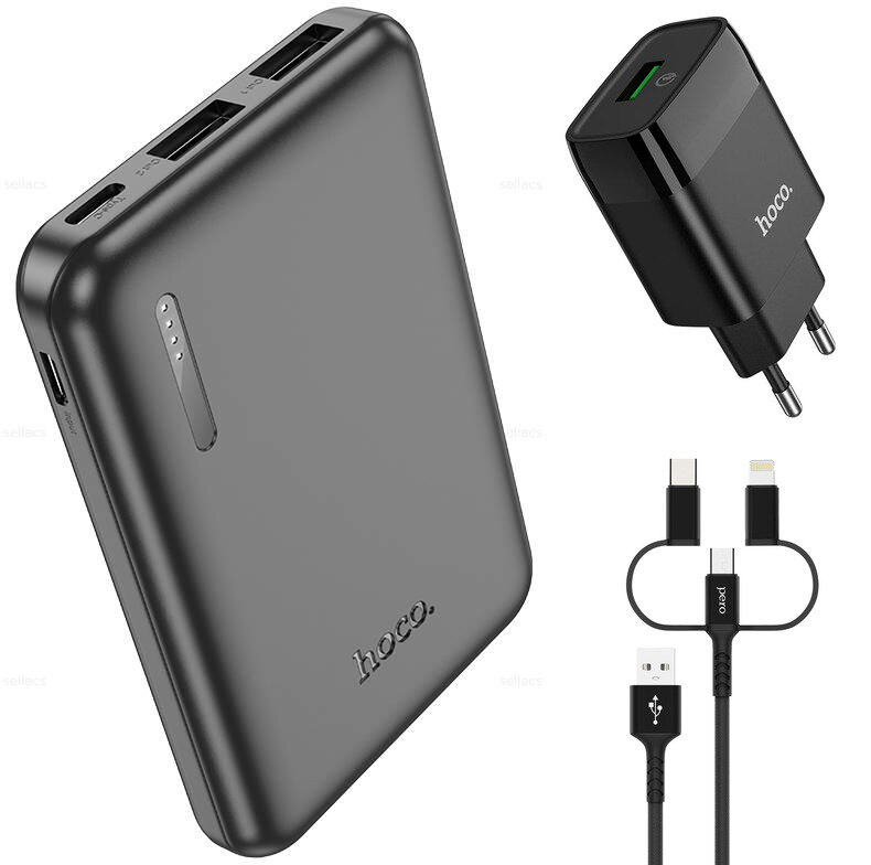Универсальный Доп. Аккумулятор 30000mAh, J101B, HOCO, выход: 2 USB (22.5W)+1 PD (20W), черный