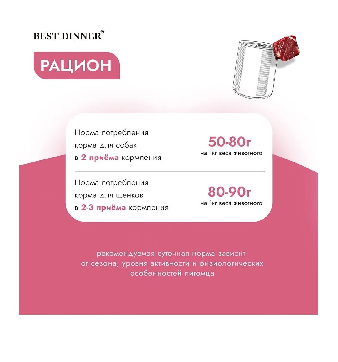 BEST DINNER PREMIUM меню № 4 для собак и щенков с телятиной и овощами (340 гр х 12 шт )