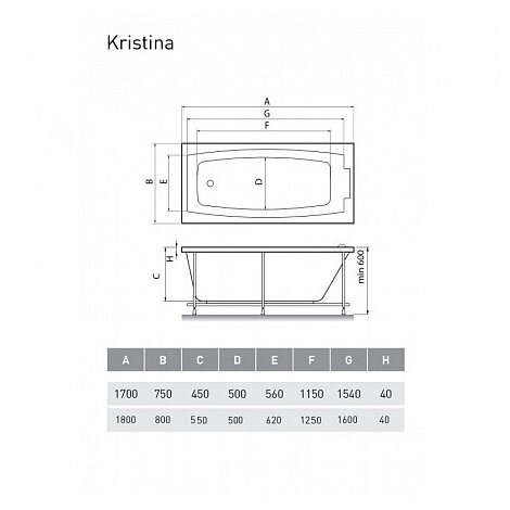 Ванна акриловая Relisan Kristina Гл000008873, 170х75
