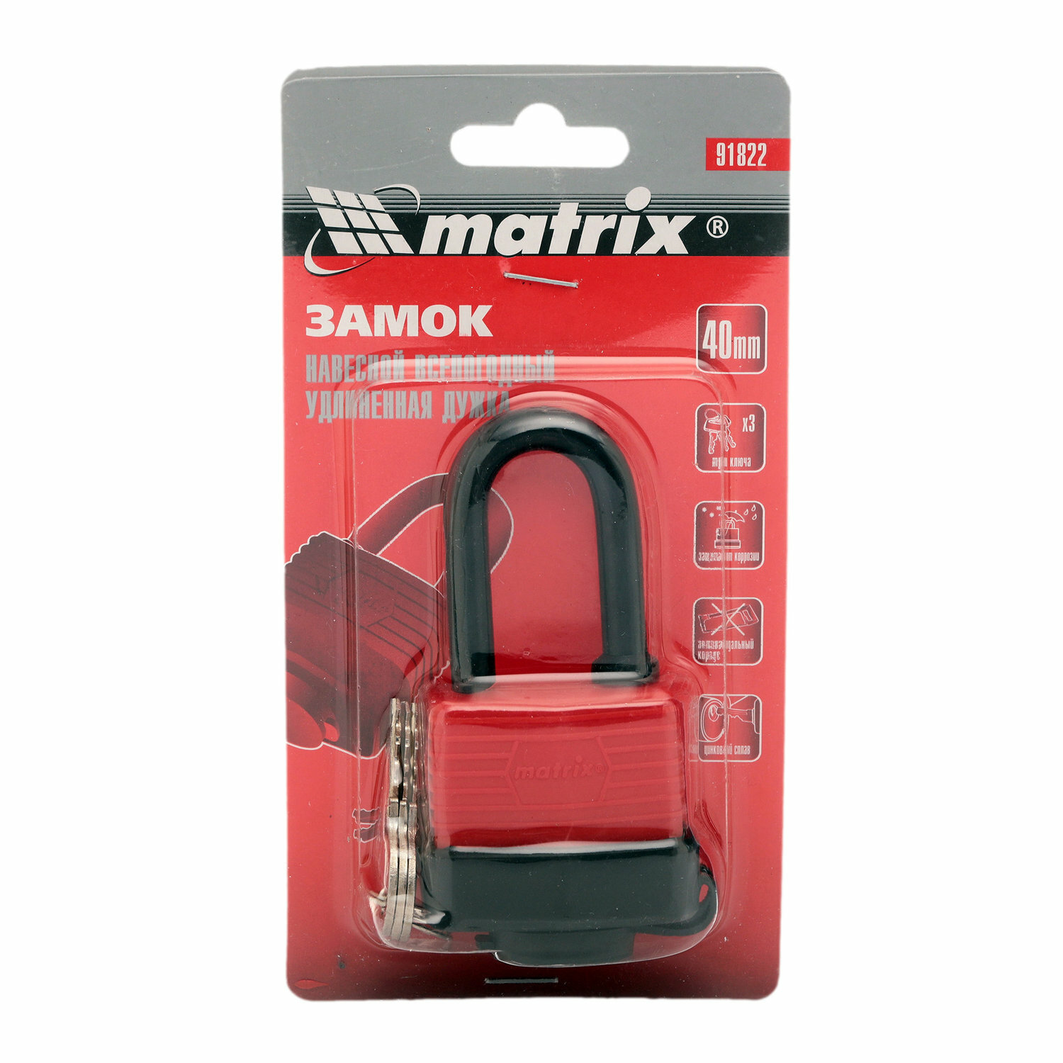 Купить MATRIX 91822 Замок навесной всепогодный, 40 мм, удлиненная дужка MATRIX 91822 MATRIX 91822