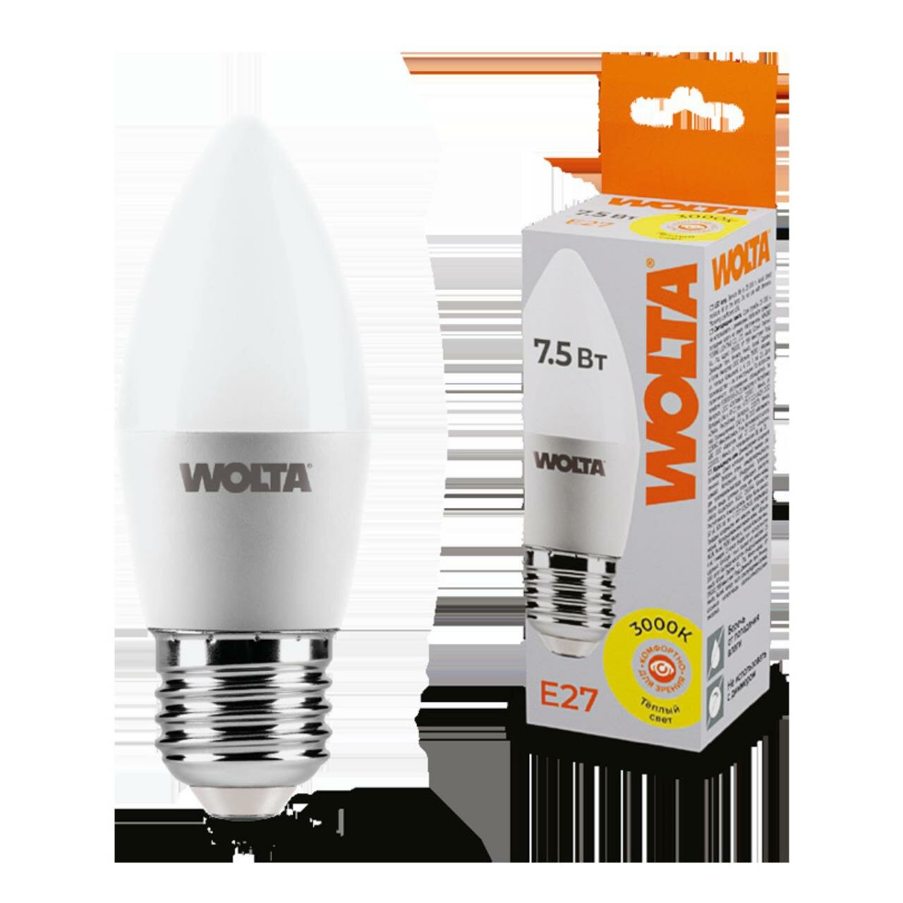 Wolta Лампа свеча 7.5 Вт LED, 3000K, 25YC7.5E27 интересное: